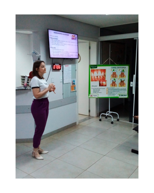 O encontro foi conduzido pelo dentista Dr. Marco, pela farmacêutica Paula e pela enfermeira Ana Maria, que abordaram temas essenciais para o período gestacional e os primeiros cuidados com o bebê. Entre os assuntos tratados estiveram os cuidados com a saúde bucal durante a gestação, o uso correto de medicamentos e a importância do teste do pezinho, além de orientações sobre como o exame é realizado.
