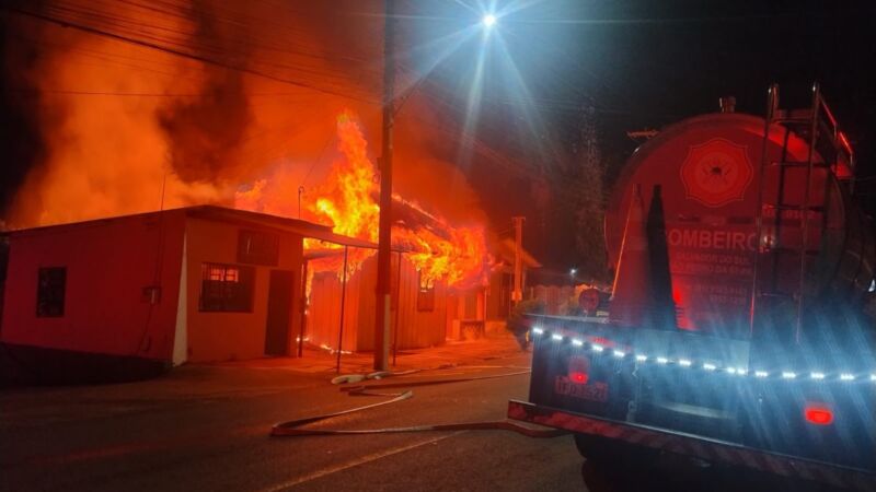 Uma residência foi completamente consumida por um incêndio na noite desta terça-feira (30), no centro de Salvador do Sul. O fogo teve início pouco antes das 21h e mobilizou equipes dos Bombeiros da região.