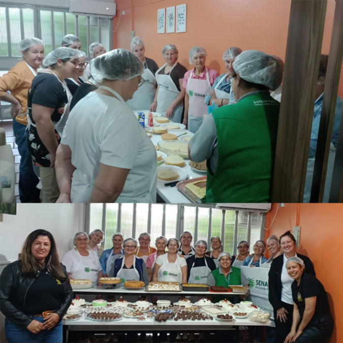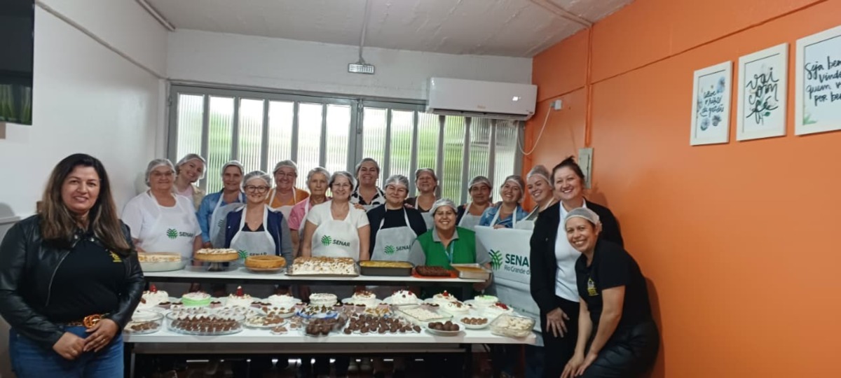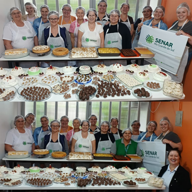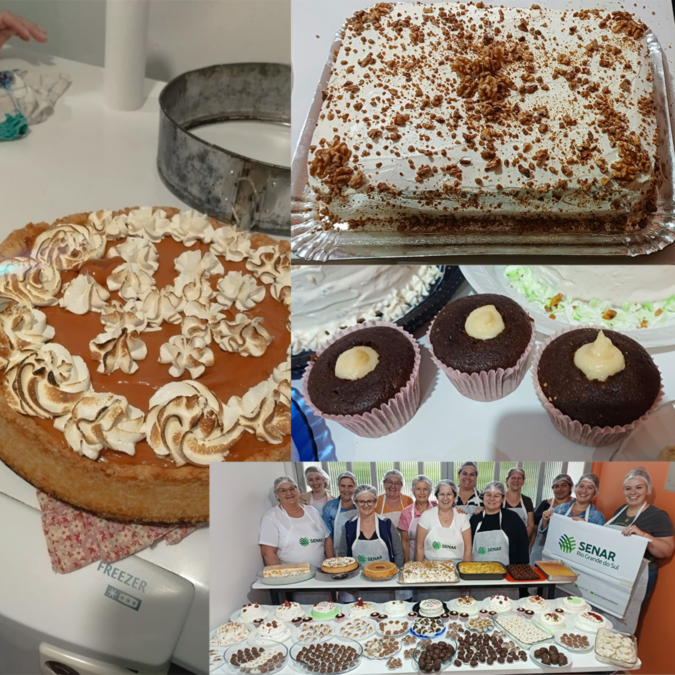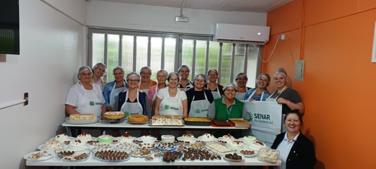 Durante os dois dias de curso, os participantes, sob a orientação da Instrutora Cristiane da Costa do SENAR/RS, mergulharam em um conteúdo prático e abrangente. Foram exploradas diversas técnicas de produção, desde a correta manipulação e higiene dos alimentos, até o preparo de massas, recheios variados, coberturas e decorações, essenciais para a confecção de doces e tortas com padrão de qualidade.
