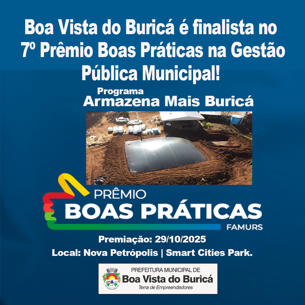 O destaque vem para o projeto “Armazena Mais, Buricá”, da Secretaria de Agricultura e Meio Ambiente, que incentiva a construção de cisternas para armazenamento de água da chuva, ajudando a reduzir os efeitos da estiagem, fortalecer a produção agropecuária e promover a sustentabilidade no campo.