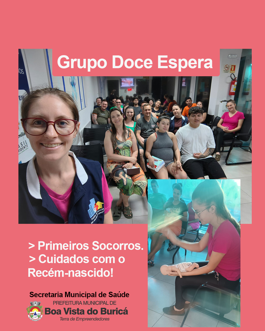 O 3º Ciclo do Grupo Doce Espera teve início na terça-feira, 25 de novembro de 2025, reunindo gestantes e pais na Unidade de Saúde do Posto Central, em Boa Vista do Buricá. O encontro ofereceu orientações essenciais sobre Primeiros Socorros e Cuidados com o Recém-nascido em casa, reforçando a importância da preparação familiar para a chegada do bebê.