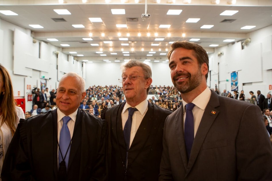 O governador Eduardo Leite participou, na manhã desta quarta-feira (10/12), da solenidade de posse do novo presidente do Tribunal de Contas do Estado (TCE-RS), o conselheiro Iradir Pietroski. A cerimônia ocorreu na sede do órgão, em Porto Alegre. Pietroski sucederá Marco Peixoto, que comandou a entidade nos últimos dois anos.