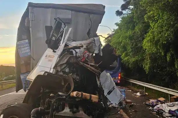 Um ônibus que transportava integrantes do Grupo de Idosos Sempre Unidos, da localidade de Boa Esperança, Humaitá, se envolveu em um grave acidente com vítima fatal e cerca de 20 feridos na madrugada desta sexta-feira (12). A colisão frontal entre o ônibus – de uma empresa de Crissiumal – e um caminhão de Boa Vista do Sul ocorreu por volta das 4h no km 282 da BR-386, em São José do Herval, no Vale do Taquari.