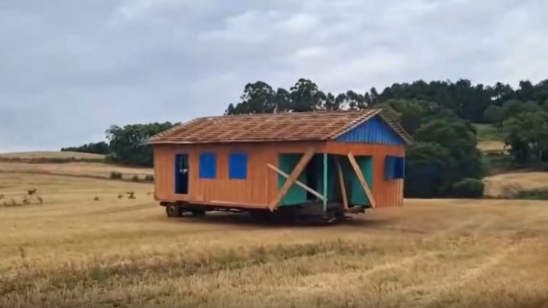 Transporte de casa chama atenção no interior de Horizontina