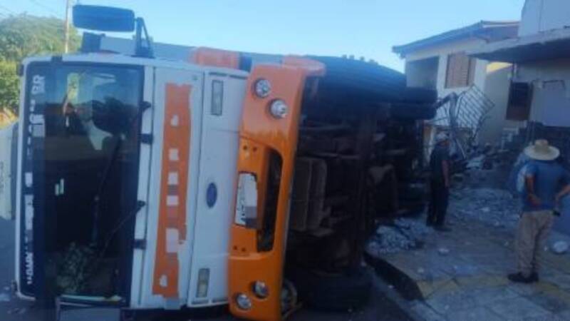 Caminhão bate em parede de prédio após pane nos freios em Santa Rosa
