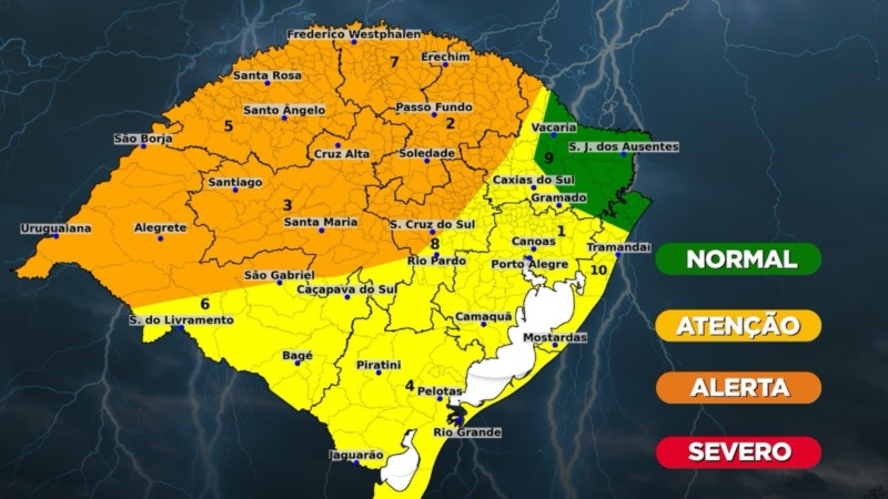 Previsão alerta para tempestades no Rio Grande do Sul neste fim de semana
