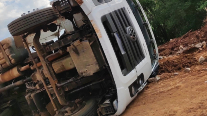 Caminhao tombou na estrada entre Crissiumal e Tiradentes do Sul
