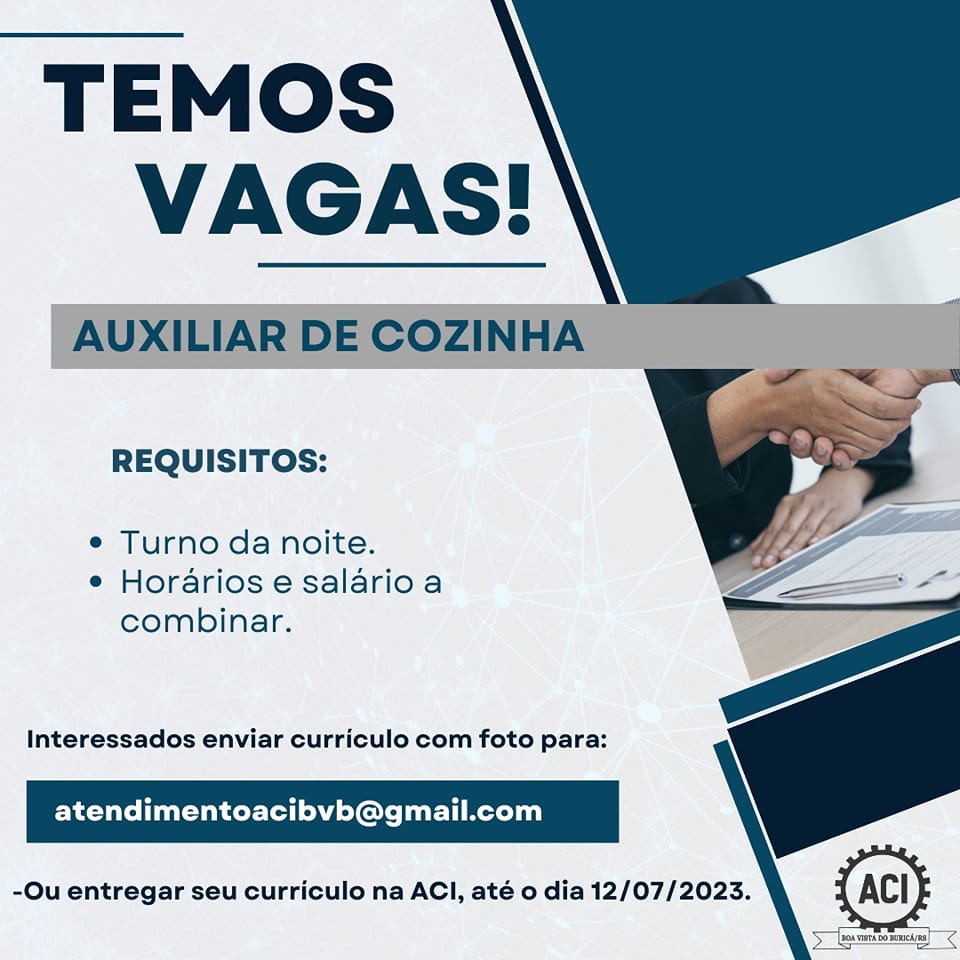 Vaga para Auxiliar de Cozinha em Boa Vista do Buricá