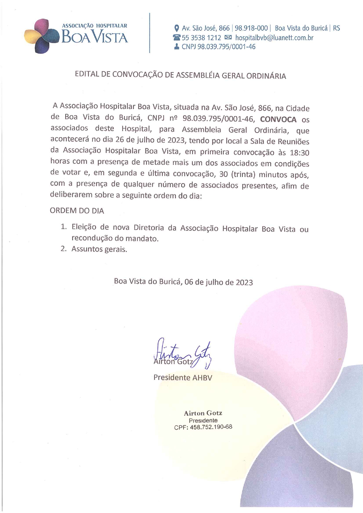 Associação Hospitalar Boa Vista realiza Assembleia Geral Ordinária no dia 26/07/2023
