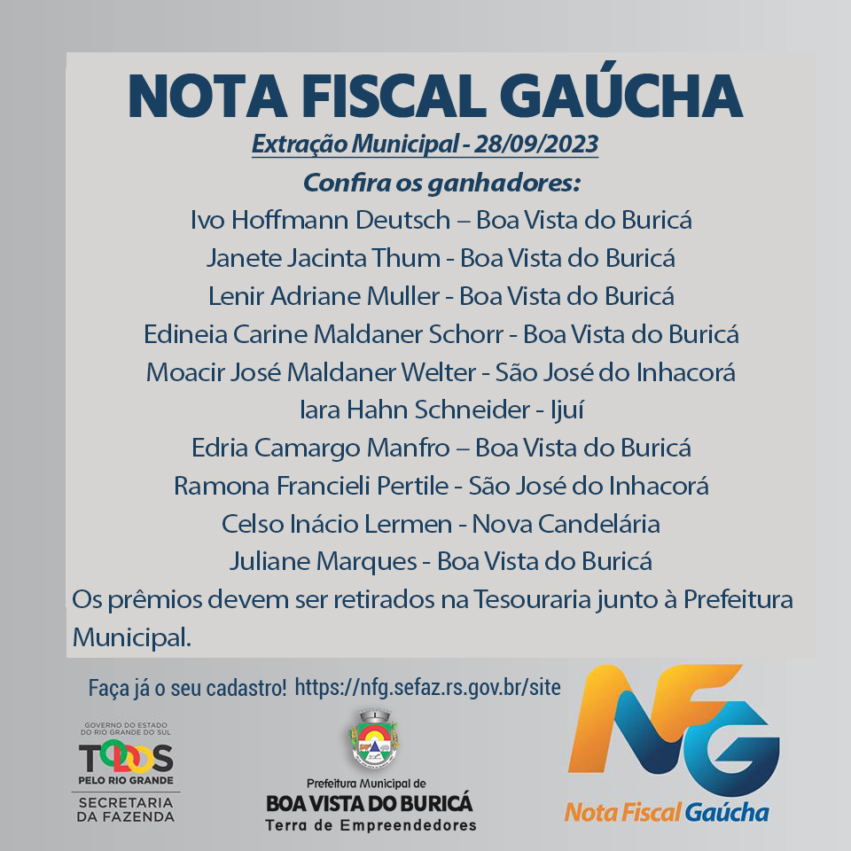Aconteceu no dia 28/09/2023, o sorteio mensal do programa Nota Fiscal Gaúcha.