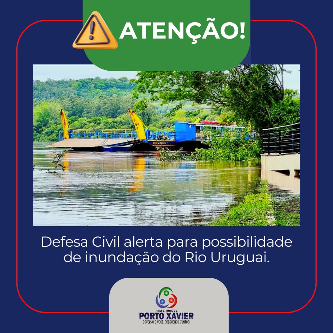 Observando o comportamento das chuvas e a vazão do Rio Uruguai, a Coordenação da Defesa Civil de Porto Xavier orienta os ribeirinhos a ficarem atentos à elevação do Rio Uruguai, preparados para uma eventual necessidade de deixarem lugares alagadiços.