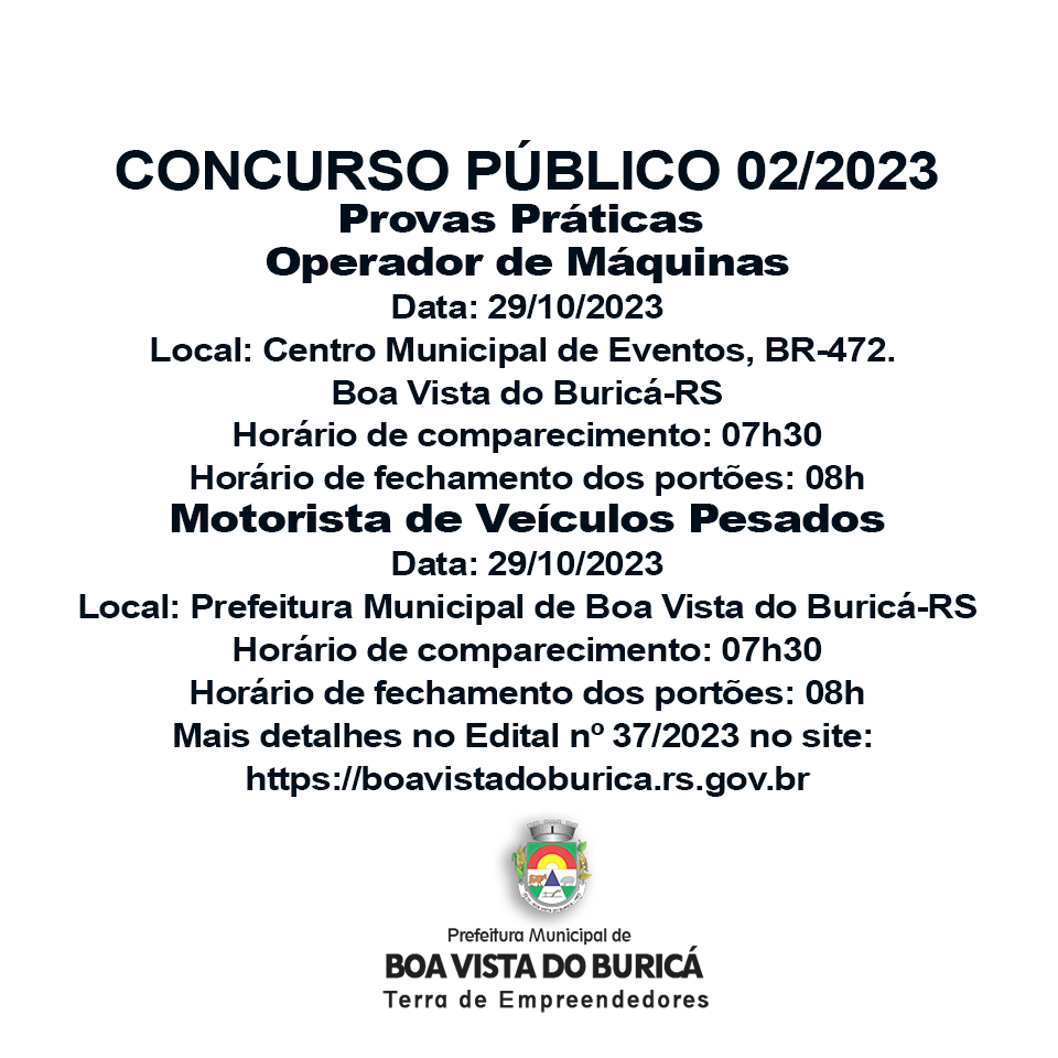 Provas Práticas para Operador e Motorista serão realizadas no dia 29/10 em Boa Vista do Buricá
