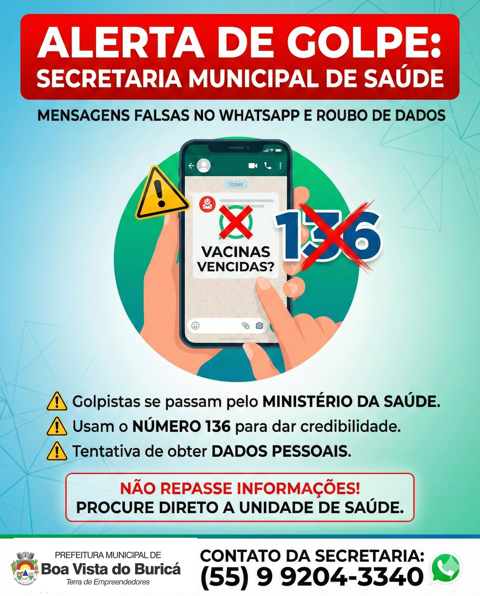 Secretaria de Saúde alerta para golpe no WhatsApp usando nome do Ministério da Saúde