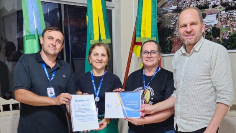 Participaram do encontro Charles André Fernandes, Chefe do Escritório; Ângela Cristina Dudar Petter, Extensionista rural Social; e Vera Cortelette Simon, Assistente Administrativa. Na ocasião, foi realizada a entrega oficial do Relatório de Atividades referente ao ano de 2025, além da apresentação do Plano Operativo para o ano de 2026.